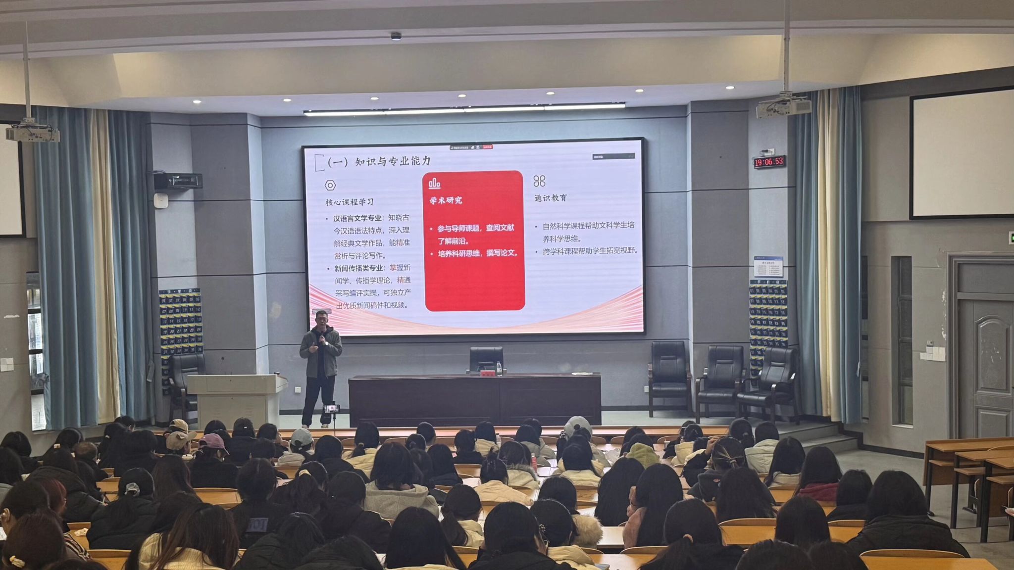 在怀中南110开展“三考”动员与就业能力提升专题讲座。会议由院党委副书记李豪杰主讲,采用线上与线下相结合的方式,面向23级、24级全体学生及家长。