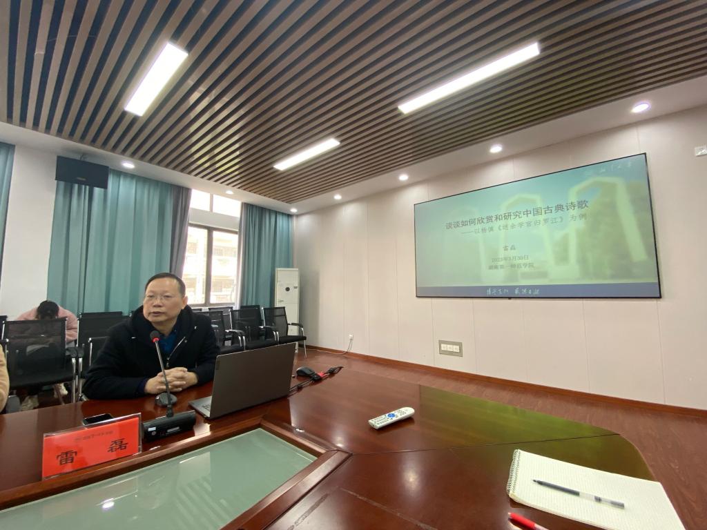 师生开展题为“谈谈如何欣赏和研究古典诗歌”的学术讲座。讲座由王霞副院长主持,脱裤吧