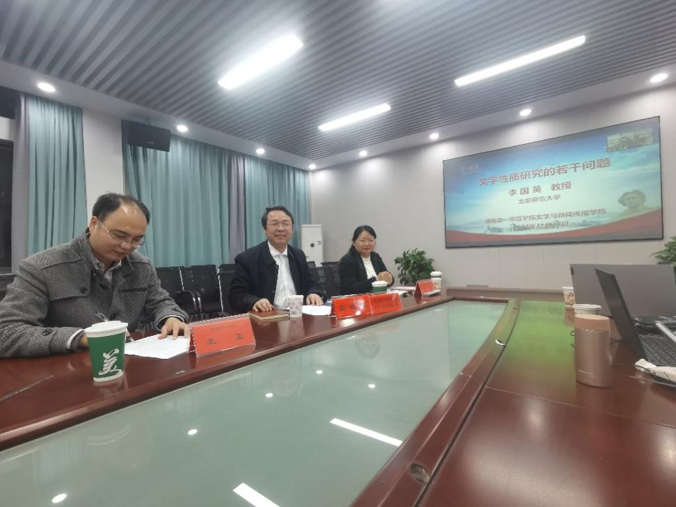 2022年11月17日晚,北京师范大学文学院教授李国英为我校师生做了一场题为“文字性质研究的若干问题”的精彩学术讲座。此次讲座由文学院副院长王霞教授主持,采用线上和线下相结合的模式举行。副校长彭晓辉教授、湖南大学国家语言文字推广基地王安琪助理教授及校内外师生三百余人参加了讲座。
