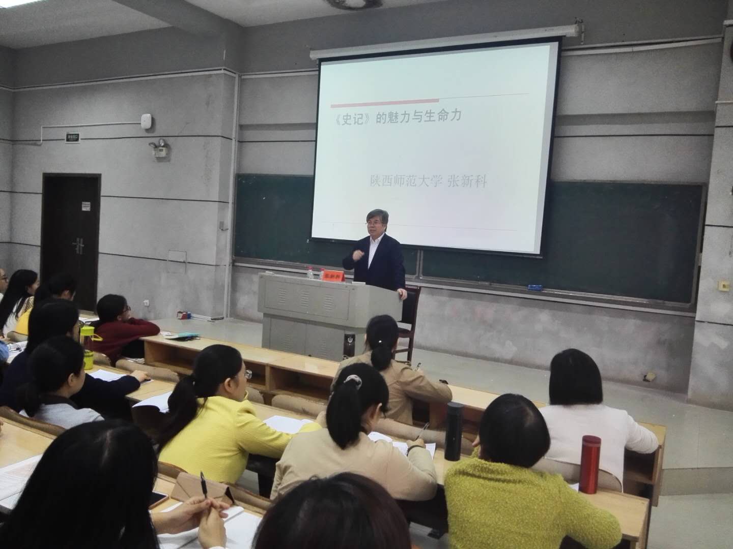 10月19日下午3点,国务院中文学科评议组成员、陕西师范大学文学院院长张新科教授,应学校邀请在润寰楼南栋201教室为学校师生做了题为“《史记》的魅力与生命力”的学术讲座。讲座由脱裤吧