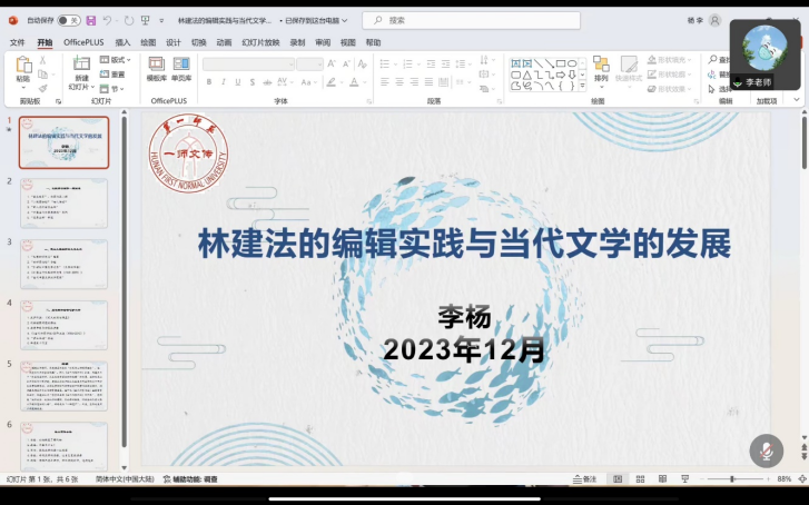 师生作“林建法的编辑实践与当代文学的发展”专题讲座,讲座采用线上会议形式,由杨水远副院长主持,2020级汉语言文学1班、汉语言文学2班全体学生参加学习。