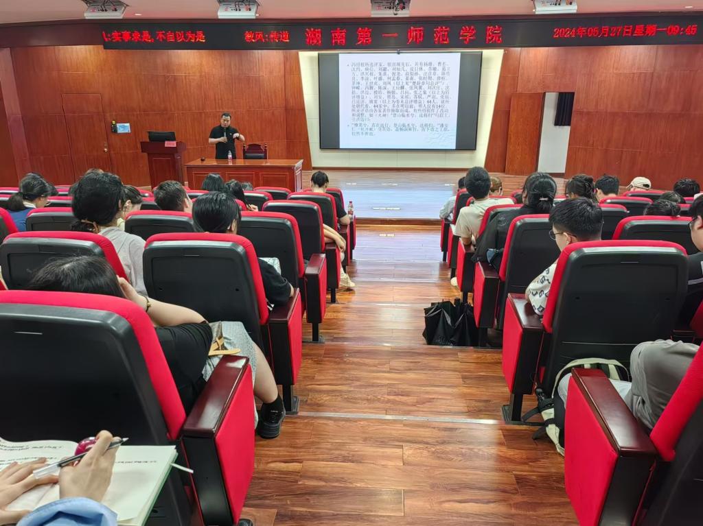 院长龙永干教授主持,副院长杨水远、汉语言文学系老师以及21级汉语言文学1班和2班同学共100余人参加讲座。