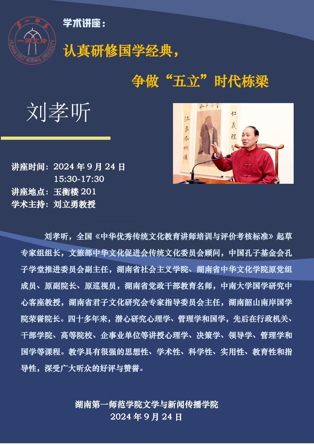 学术预告|认真研修国学经典,争做“五立”时代栋梁