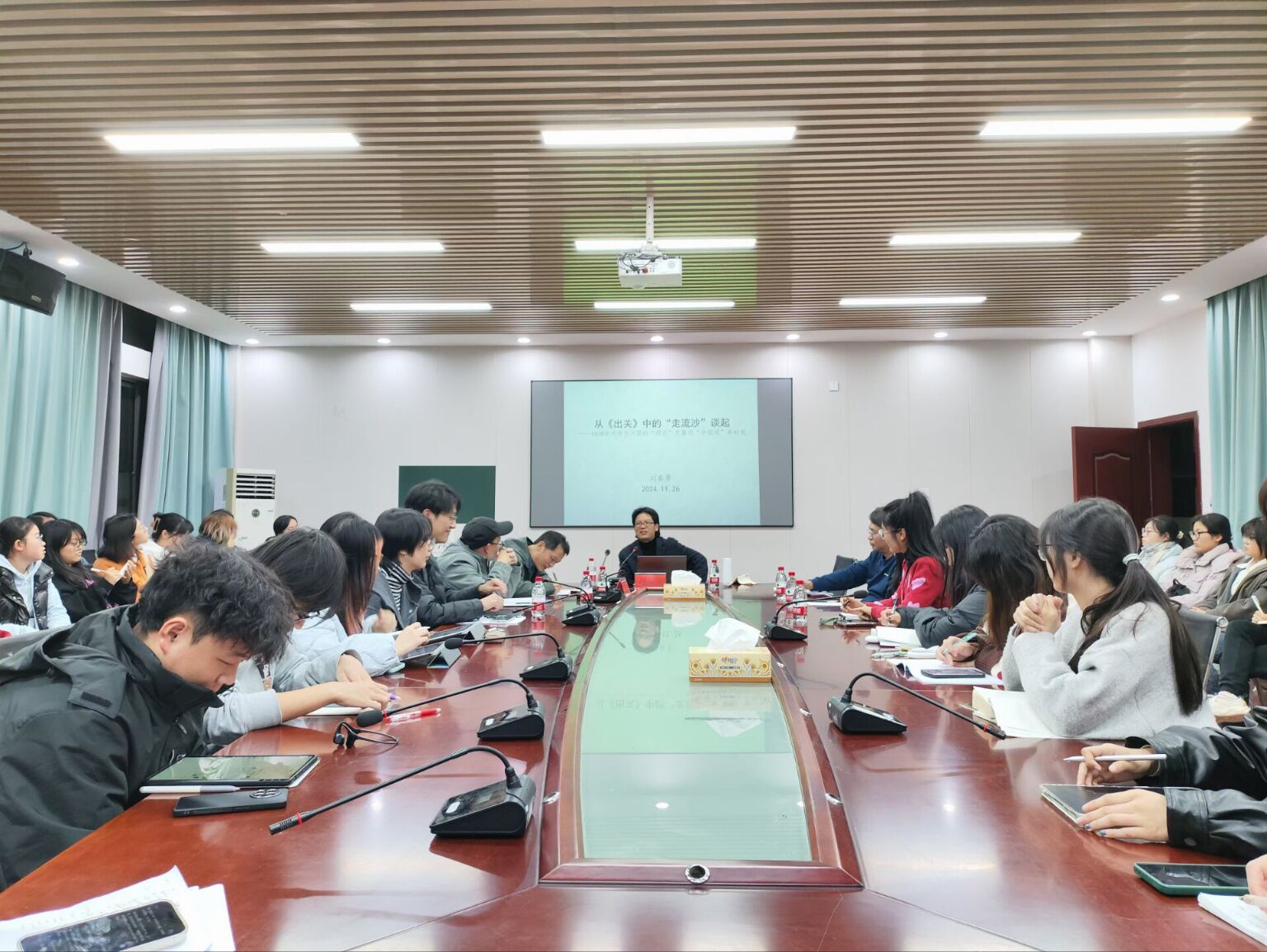 开展“从《出关》中的走流沙谈起:19世纪30年代的‘西北’和鲁迅‘中国观’再检视”为主题的讲座。讲座由龙永干院长,杨水远副院长和百余名师生参与。讲座由龙永干院长主持。