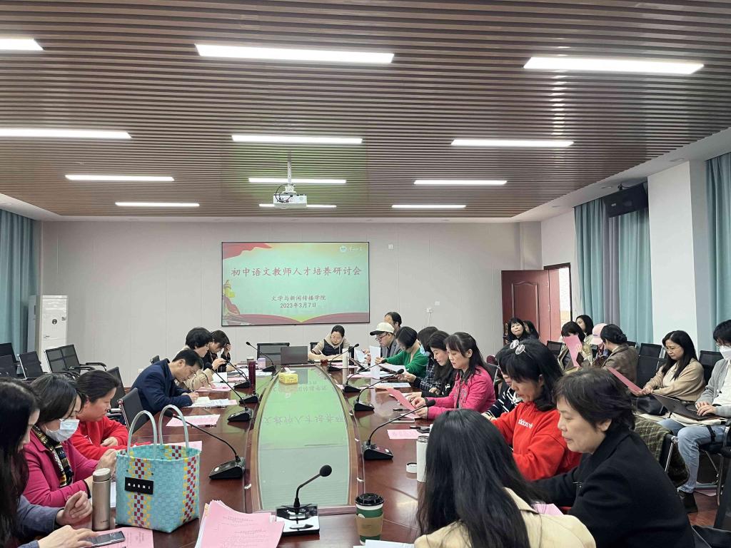 会上,汉语言文学系系主任杨水远、汉语国际教育系系主任王正、综合教研室主任张虹分别就本系室围绕初中语文教师人才培养提质工作所做的前期准备和具体工作思路、举措进行了汇报。各系室围绕初中语文教师人才的培养进行研讨,组织修订了人才培养方案并完成了课程教学大纲的撰写。