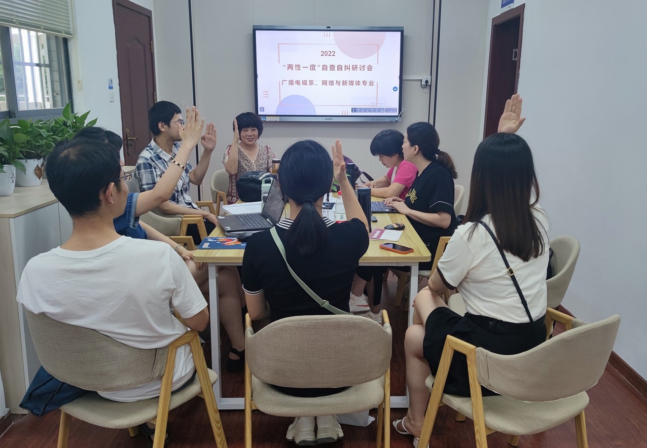 为贯彻落实学校《关于贯彻落实办学新理念服务“强师计划”和“强省会战略”的实施意见》和《关于推进课程“两性一度”建设三年行动计划》等文件精神,切实提高新闻传播类专业人才培养质量,6月29日至7月6日,广播电视学专业与网络新媒体专业联合开展“两性一度”专题培训。此次培训,老师们主要通过集中学习、案例分享、自主研讨、交叉审核等方式,深刻领会课程“两性一度”内涵、实质和要求,从备课、授课、辅导、考核、质量五个环节自省、自查、自纠。