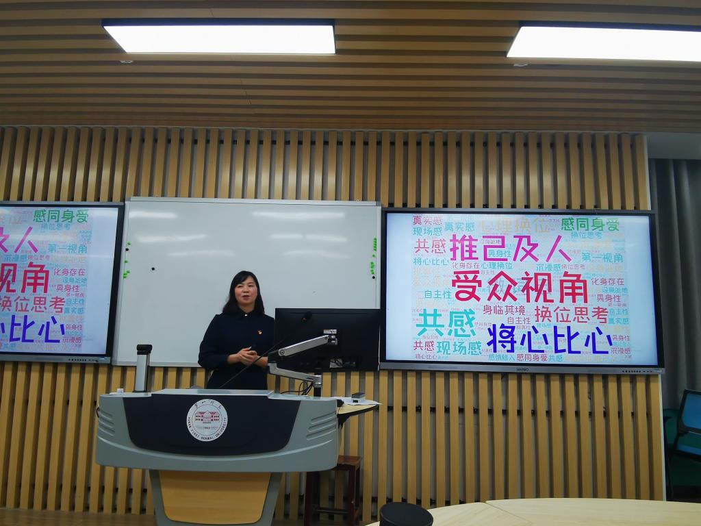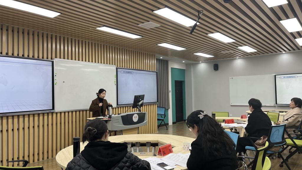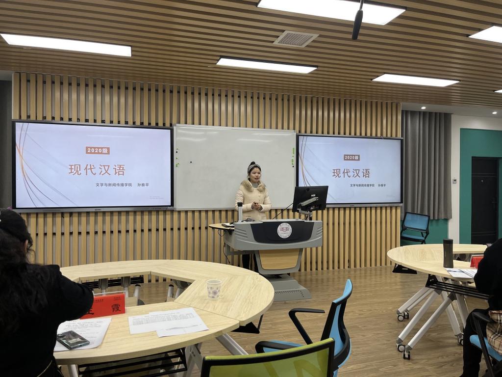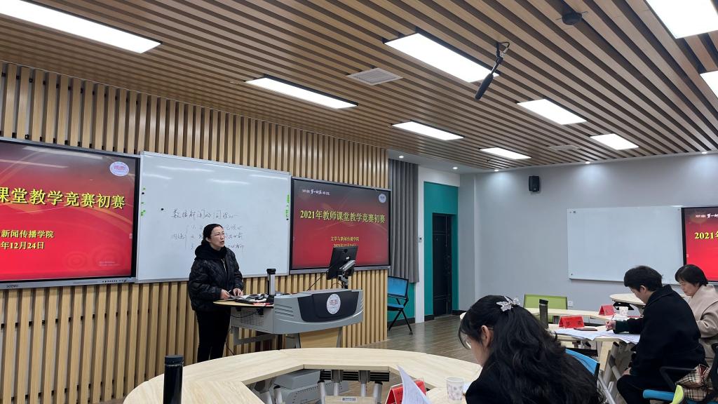 脱裤吧 教师课堂教学竞赛初赛于12月24日下午14:00在特立北102智慧教室进行,孙雅平、刘君君、赵姣、刘晓云、谢亚可共5位青年教师参加,毛丽老师、王霞老师、罗燕老师担任评委,邵馨颖老师担任点评专家,脱裤吧 全体教师参与了活动。