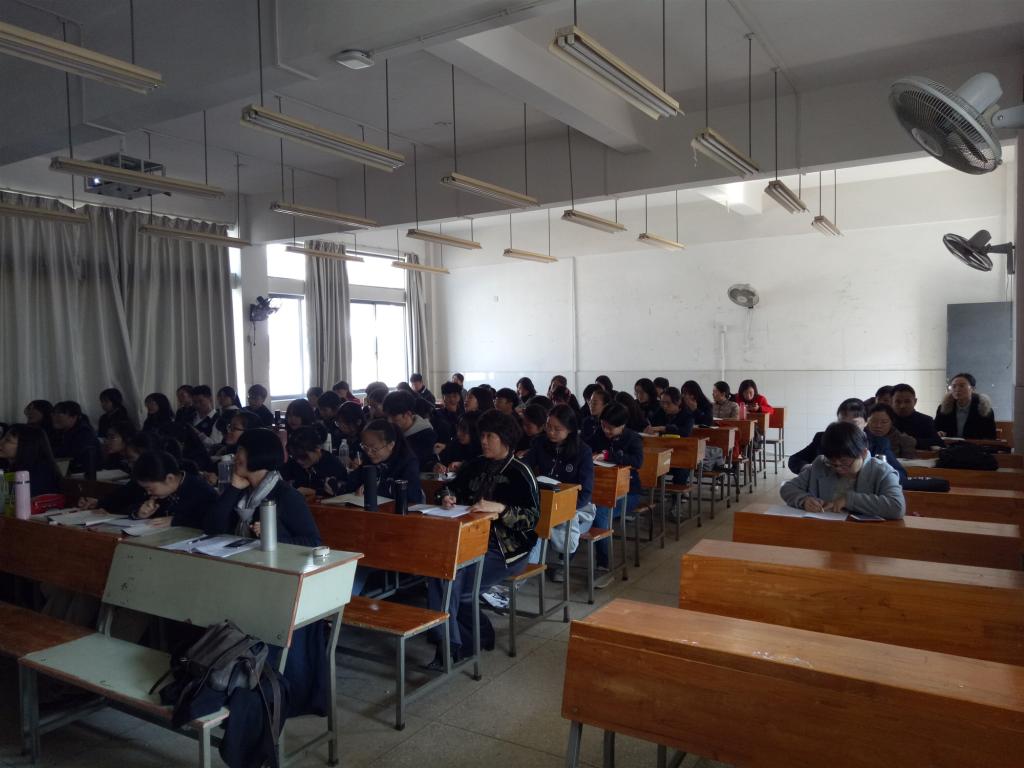 示范课观摩活动在玉衡楼503召开,龙永干院长、邓姿副院长、各教研室教师代表以及2019级798中文班学生共计80余人参与了观摩。
