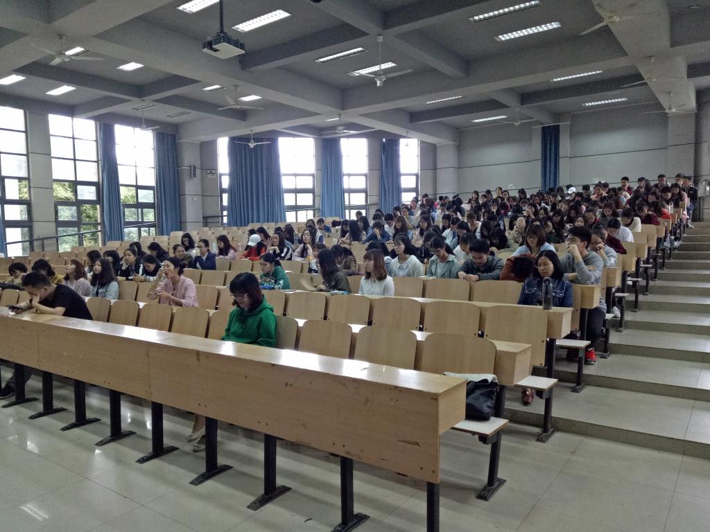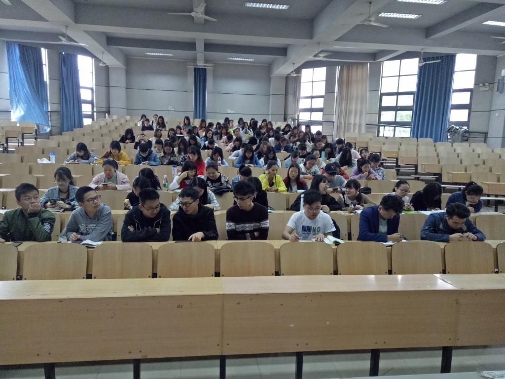 见习动员大会分两批次在分别在实验楼C101和理科楼报告厅(一)举行,副院长龙永干、讲座嘉宾袁利芬、周杨林、陈慧老师,脱裤吧