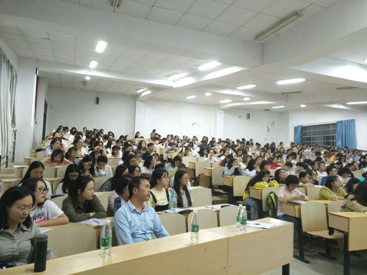 副院长邓姿教授主持。教务办、学工办相关老师以及文学院2016级师范生共计500余人参与了本次讲座。