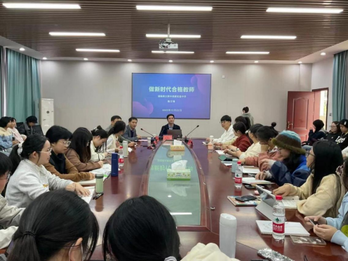 教师与学子带来一场题为“做新时代合格教师”的实习专题讲座。讲座由院长龙永干主持,党委副书记李豪杰、副院长杨清华以及近百名同学参加。