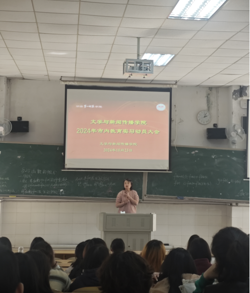 2022级汉语言文学专业公费定向师范生市内教育实习动员大会在玉衡南201教室举行, 会议由院教科办陈慧老师主持,2022级汉语言文学专业公费定向师范生、全体教育实习带队老师参加了本次动员大会。