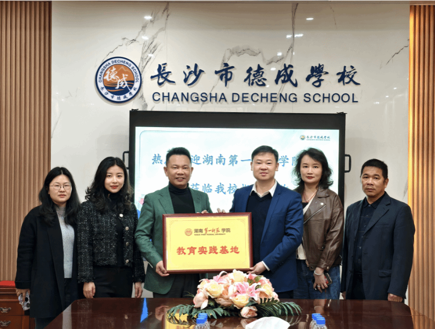 与长沙市德成学校在德成学校会议室隆重举行了实习基地签约暨授牌仪式。这标志着双方将在教育实践领域展开深入合作,共同为培养新时代的优秀人才搭建坚实平台。长沙市德成学校校长张磊、书记薛永欢、副校长李建宏,脱裤吧