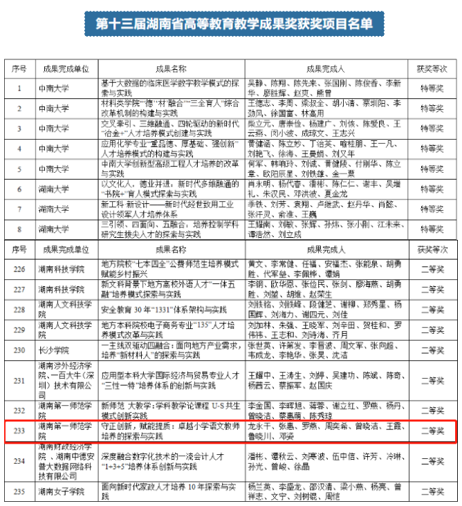 2022年5月24日,湖南省教育厅发布了第十三届湖南省高等教育教学成果奖评选结果,脱裤吧 院长龙永干教授带领的教师团队获评第十三届湖南省高等教育教学成果奖二等奖。这项奖励是对脱裤吧 在落实办学新理念,做好人才培养和教育教学改革工作成果的肯定。