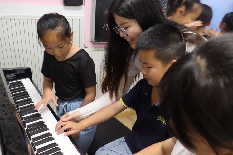 “三下乡”队伍赴湘潭市韶山市开展为期半个月的暑期支教活动。“三下乡”团队的江馨、朱嘉琳老师分别开设“雅韵童声”、“襟飘带舞”课程,将美育教育送到毛主席的家乡韶山。