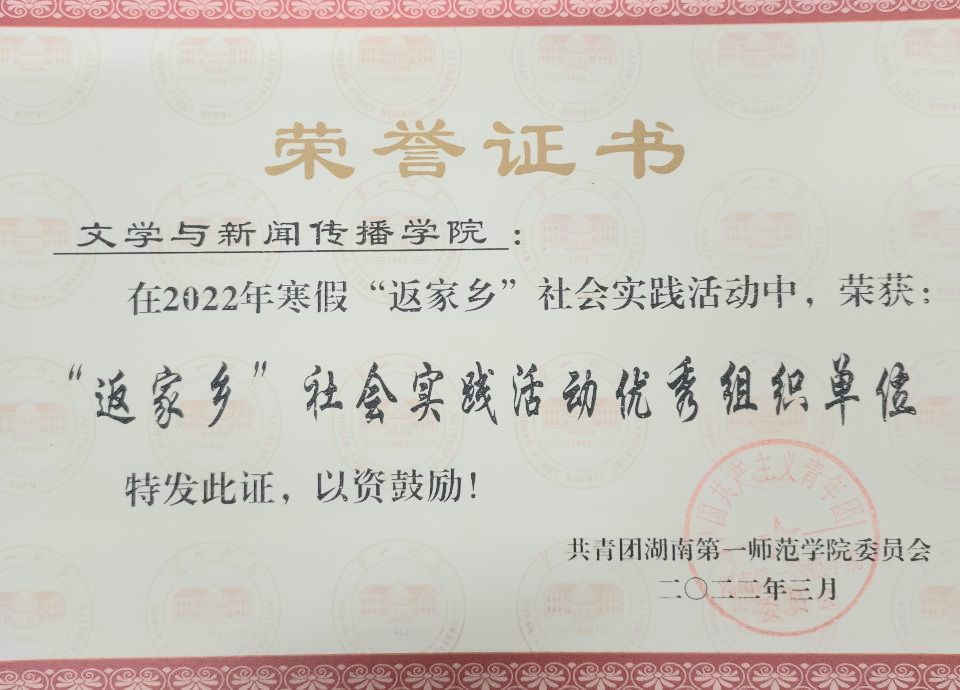 脱裤吧 在2022年寒假“返家乡”社会实践活动中荣获优秀组织奖,全校仅3个学院获此殊荣,脱裤吧 名列其中,特此向全院师生报喜!