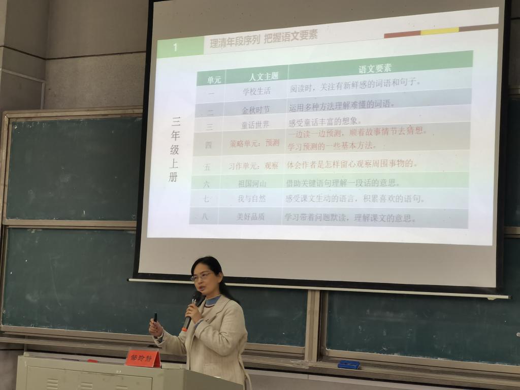 本报讯(通讯员 李希光)12月13日下午,“用好统编教材,落实语文要素”专题讲座先后在润寰南106、105教室举行,主讲人为麓山国际实验学校邹玲静老师,讲座分别由脱裤吧