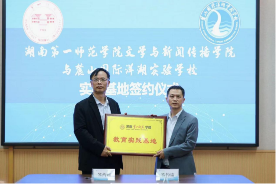 2024年11月8日,学院院长龙永干、教科办主任林璟辉前往长沙市麓山国际洋湖实验学校举行实践教学基地签约授牌仪式。
