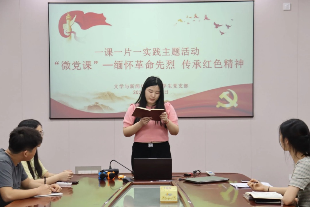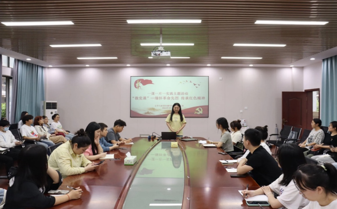 学生党支部于4月18日中午在玉衡楼201研讨室开展了“缅怀革命先烈,传承红色精神”的主题微党课活动。本次活动由21中文班的彭靖主持,20级中文2班张欢主讲,学生第一党支部书记副书记陈滢琪,学生第二党支部书记安炜成、副书记刘晨晨以及全体在校学生党员参会。