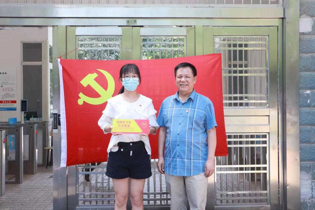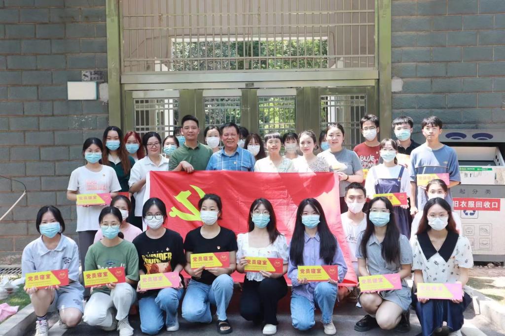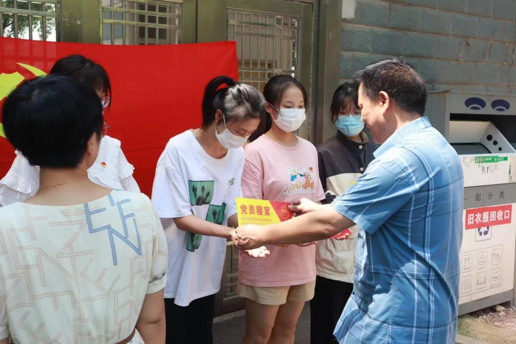 欧阳书记和老师们分别为党员寝室代表与国旗护卫队队员寝室授牌,希望学生党员与国护队员要亮身份,尽职责,带好头,显本色。从学习到工作,从宿舍到班级,从班级到年级,从学院到学校,以点带面,点面结合,在学校、学院六进公寓以及疫情防控等工作中,争做“排头兵”,齐当“急先锋”,将“一名党员,一面旗帜”真正融入担当与作为中。