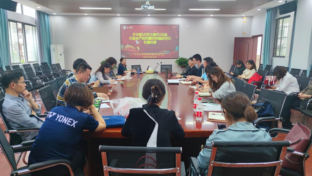 在玉衡楼201党员活动室开展了各党支部五月份主题党日活动。本次活动以“全面从严治党和党风廉政建设”为专题,学院党委陈天涯书记上党课,全体教师党员参加。