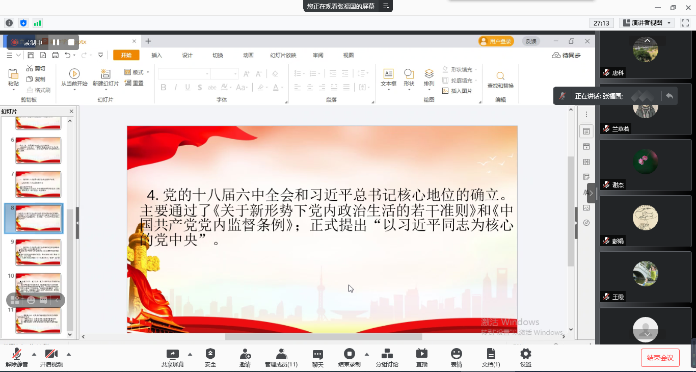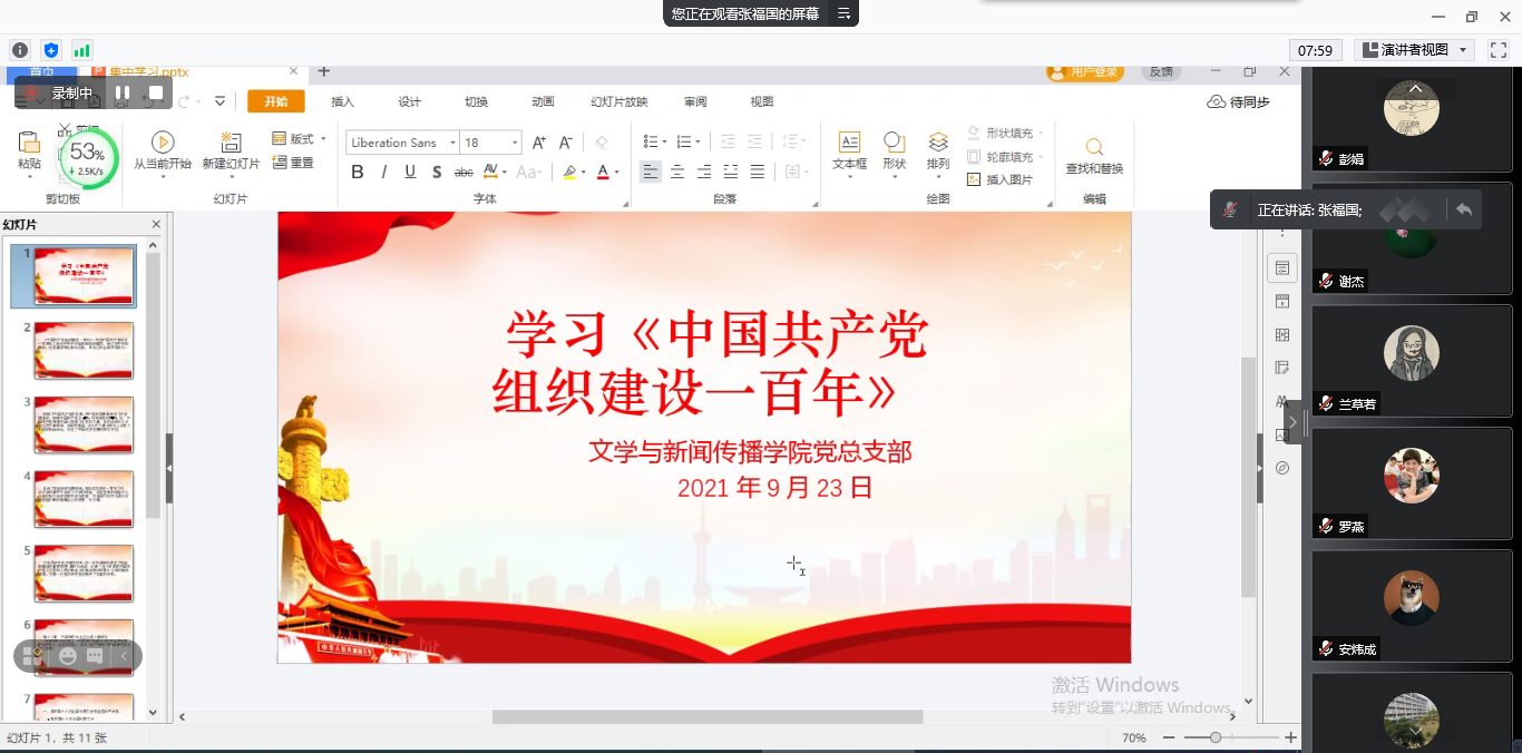会上,张福国简要介绍了《中国共产党组织建设一百年》,指出本书回顾了中国共产党的发展、总结了党组织的宝贵经验,详细讲述了党组织建设的重要思想、事件与活动,为每一位党员研究党史提供了丰富的材料。