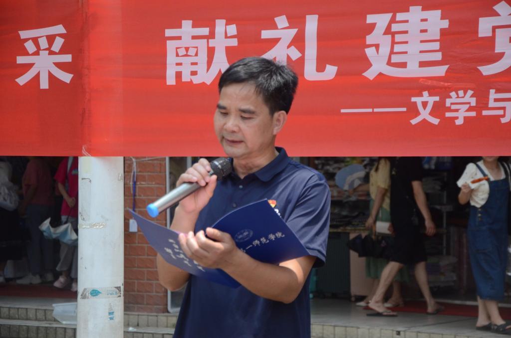 成果展在主持人的隆重介绍下开幕。佘书记致开幕词,他强调,2021年是对于中国共产党是不平凡的一年,是“两个一百年”奋斗目标交汇的关键一年。希望大家能够借助此次成果展学习中国共产党的奋斗史,在学史中明理、增信、崇德、力行。