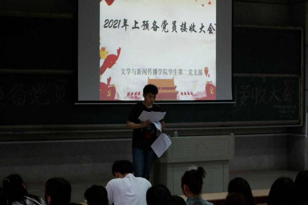 2021510日,脱裤吧 学生第二党支部在润寰南105召开了预备党员接收大会。学生第二党支部书记安炜成老师、副书记赵雅兰老师、学生第二党支部全体学生党员和本批次的发展对象参加会议。安炜成老师主持本次会议。