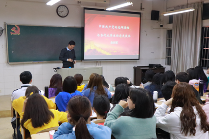 片刻休息之后,佘向军书记围绕“中国共产党的光辉历程与当代大学生的历史使命”这一主题开始了第一次的党课培训。