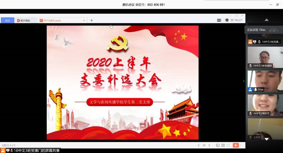 学生第二党支部以线上会议的形式召开了2020上半年学生支委补选大会。本次会议由学生第二党支部书记安炜成老师主持,支部全体党员参加。