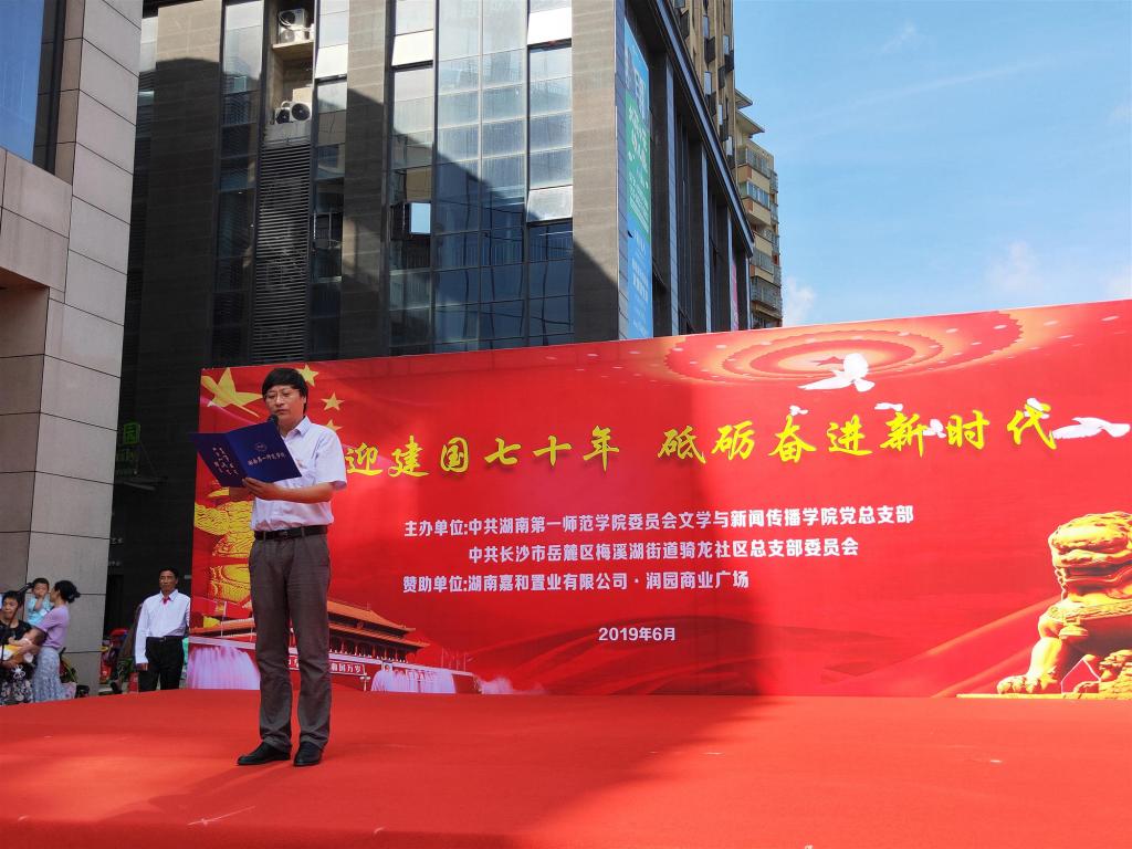 与岳麓区梅溪湖街道骑龙社区共同举办的“七十载砥砺奋进,新时代再创辉煌”主题党日活动在长沙市岳麓区润园商业广场隆重举行。