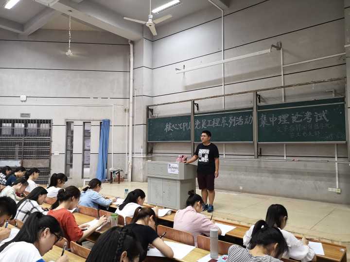党支部在文科楼报告厅开展核心CPU党员工程系列活动集中理论考试。共有60名学生党员和100名入党积极分子参加此次理论考试。