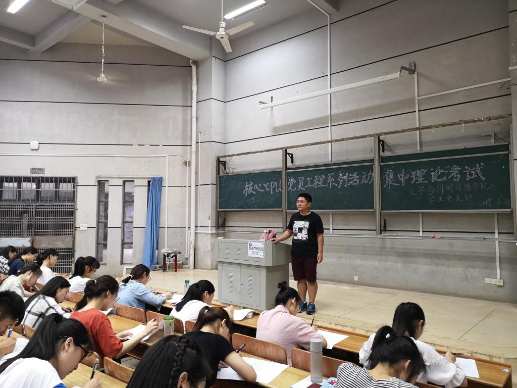 大二、大三全体党员、最新发展的一批预备党员和自愿报名的入党积极分子,本场考试由闫伟老师全程监考。