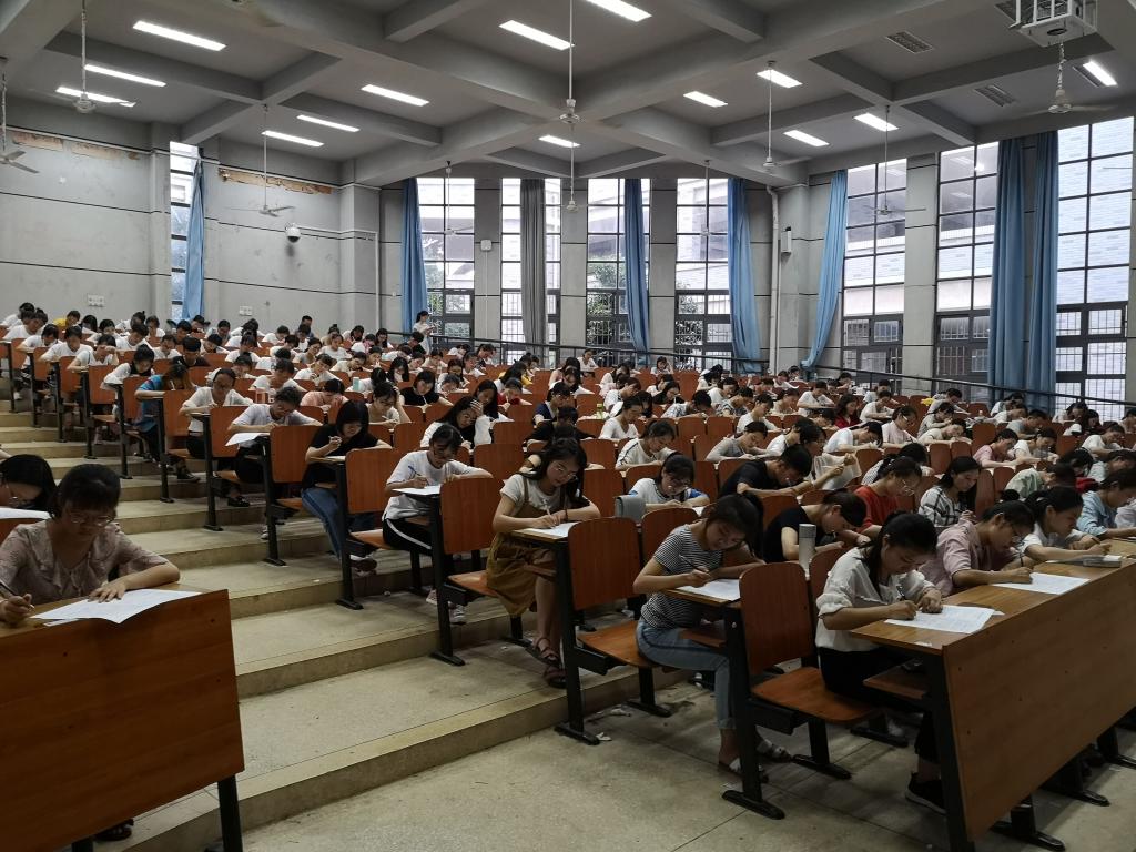 本次考试采取统一命题,闭卷答题的形式,共有填空、简答两种题型。涵盖面广,考试内容主要来自于时政、每月理论政策学习会以及晚自习宣讲内容,从党章、党的性质、党的十九大的具体内容、党的指导思想等多个方面考查同学们的学习掌握情况。同学们拿到试卷后全神贯注,埋头做题,考场气氛严肃。院学生党支部的成员严格巡查,保证考场纪律。