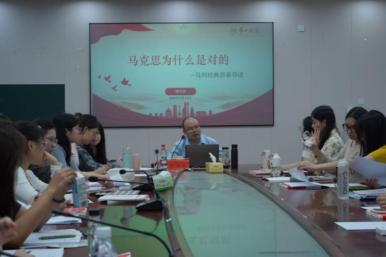 副院长杨水远进行了“马列经典原著导读”为主题的授课,详细讲解了马列经典原著的理论价值和现实意义,引导学员重新审视个人发展与社会责任的关系,促使学员以马克思主义理论为指引,在时代发展浪潮中找准定位、践行使命,为中国式现代化育栋梁材贡献一师力量。