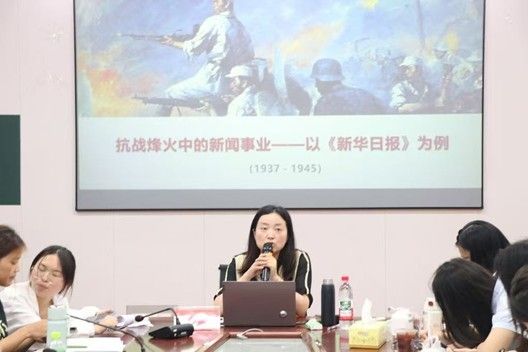 学院党委宣传委员谢杰结合学员专业特性,以“抗战烽火中的新闻事业”为主题,深刻阐述了党的百年宣传工作历史逻辑,有效促使全体学员更加坚守党管宣传、党管意识形态的政治方向,引导学员在新闻工作中积极发挥耳目喉舌功能,更好地承担起新时代宣传思想工作“举旗帜、聚民心、育新人、兴文化、展形象”的使命任务。
