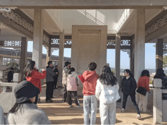 在武塘纪念亭,全体教职工一起了解历史背景,瞻仰毛主席《树立贫农和下中农的优势》的按语,浏览毛主席诗词长橱窗。