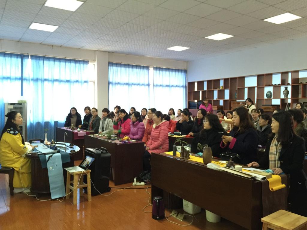 3月8日下午,在玉衡楼南601室的举行的茶道讲座吸引了50多位教职工参与。主讲者为湖南省茶叶研究所茶文化专家、中国茶艺师联盟湖南分会会长贺益娥老师。茶艺是中华传统文化的精髓。贺益娥老师娓娓道来,从茶的种类、营养功效和冲泡方法等方面逐一讲解了茶文化知识,用美的仪态给我们展示茶之形美、茶之味美、茶之道美。她重点介绍了黑茶。现场60多名女教职工在贺老师指导下现场烹煮、品鉴黑茶。通过茶艺课堂,老师们感受到雅静健康的茶艺文化,心灵得以放松。