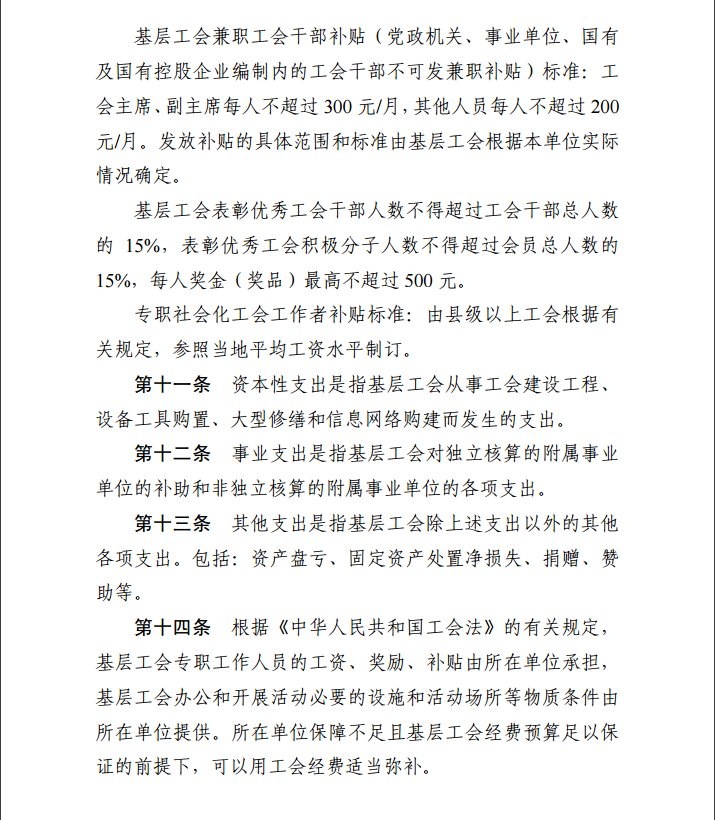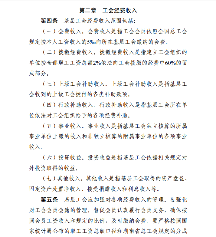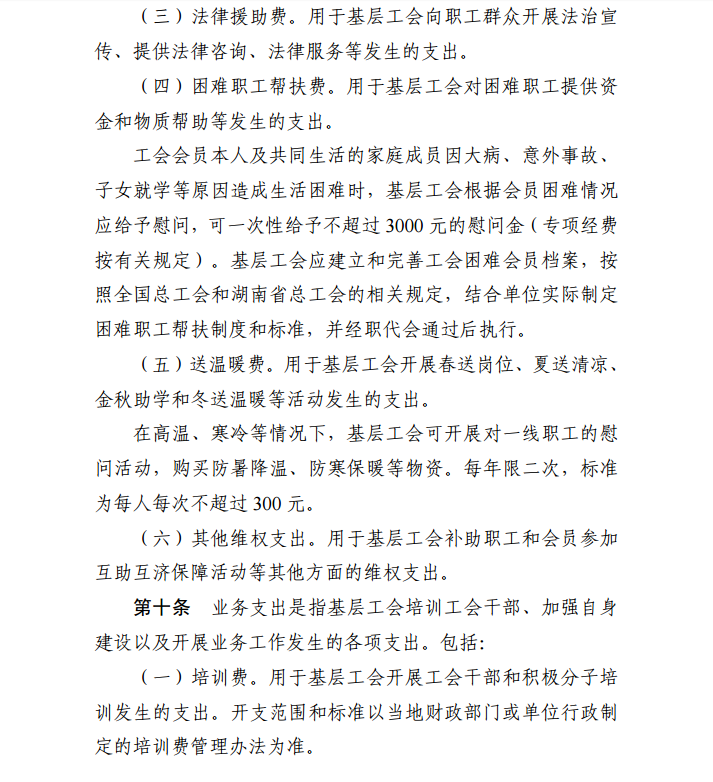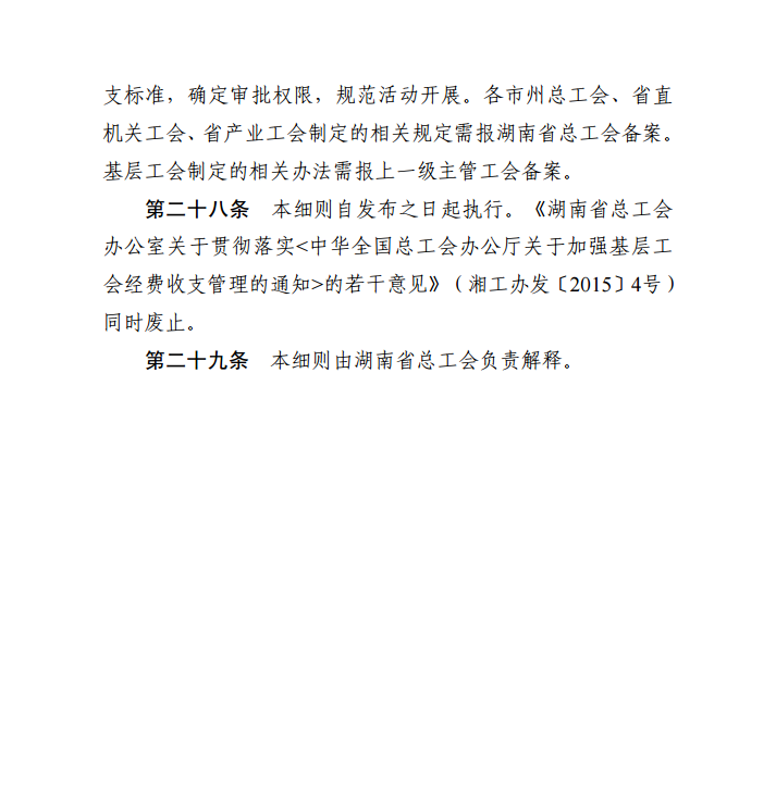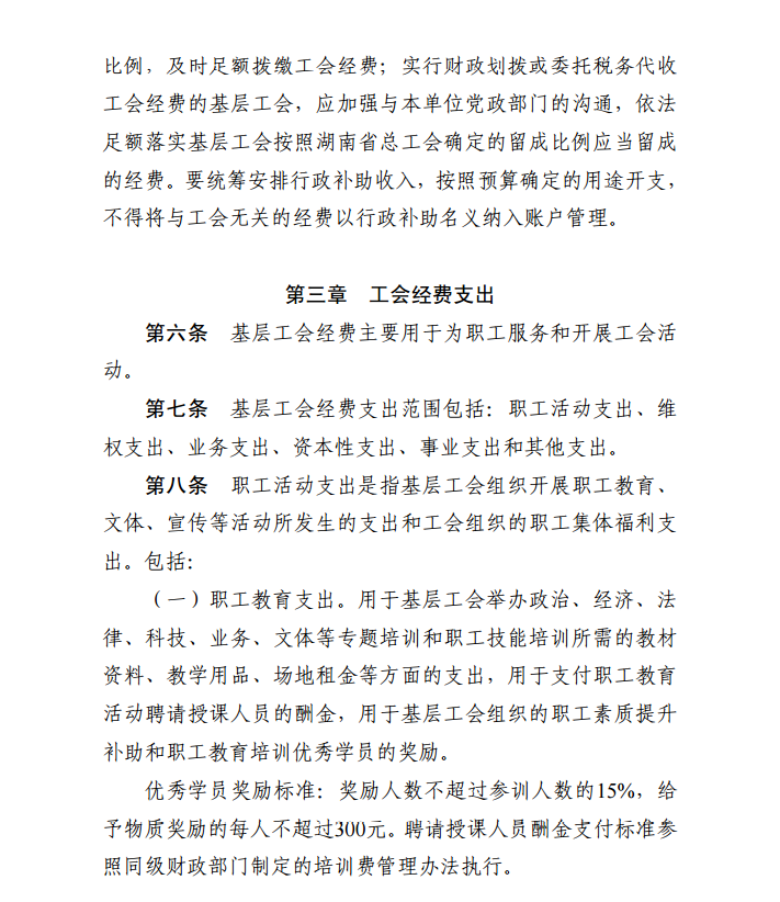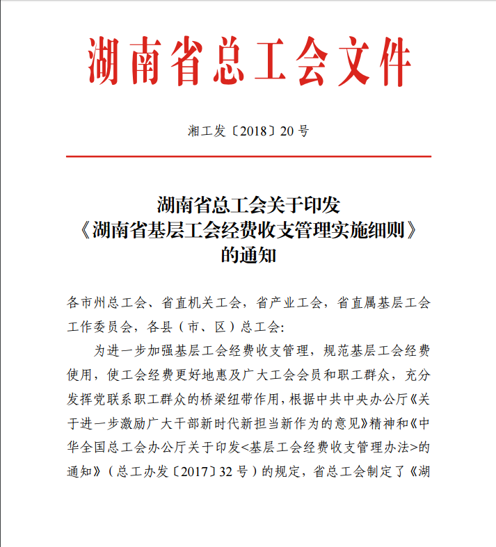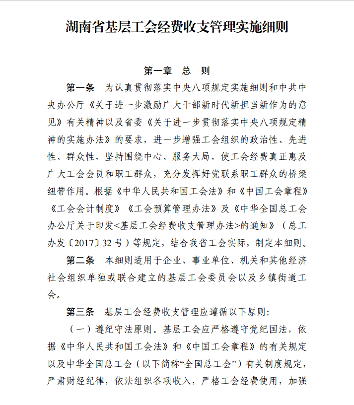 湖南省基层工会经费收支管理实施细则