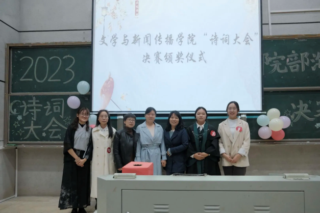 在怀中楼南110举办2022年“诗词大会”决赛,彭娟、刘汾和周华南三位老师受邀担任评委,全体辅导员老师出席本次大赛。