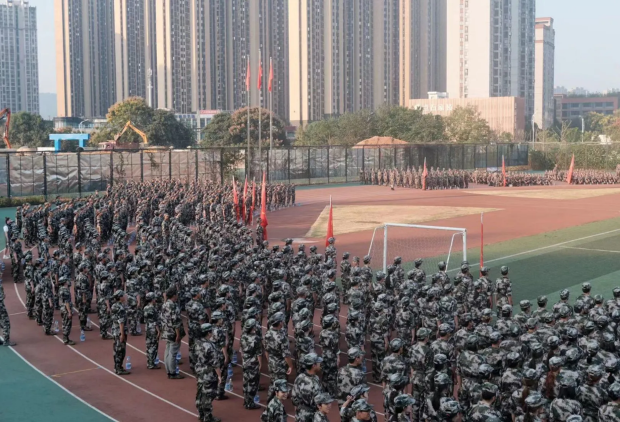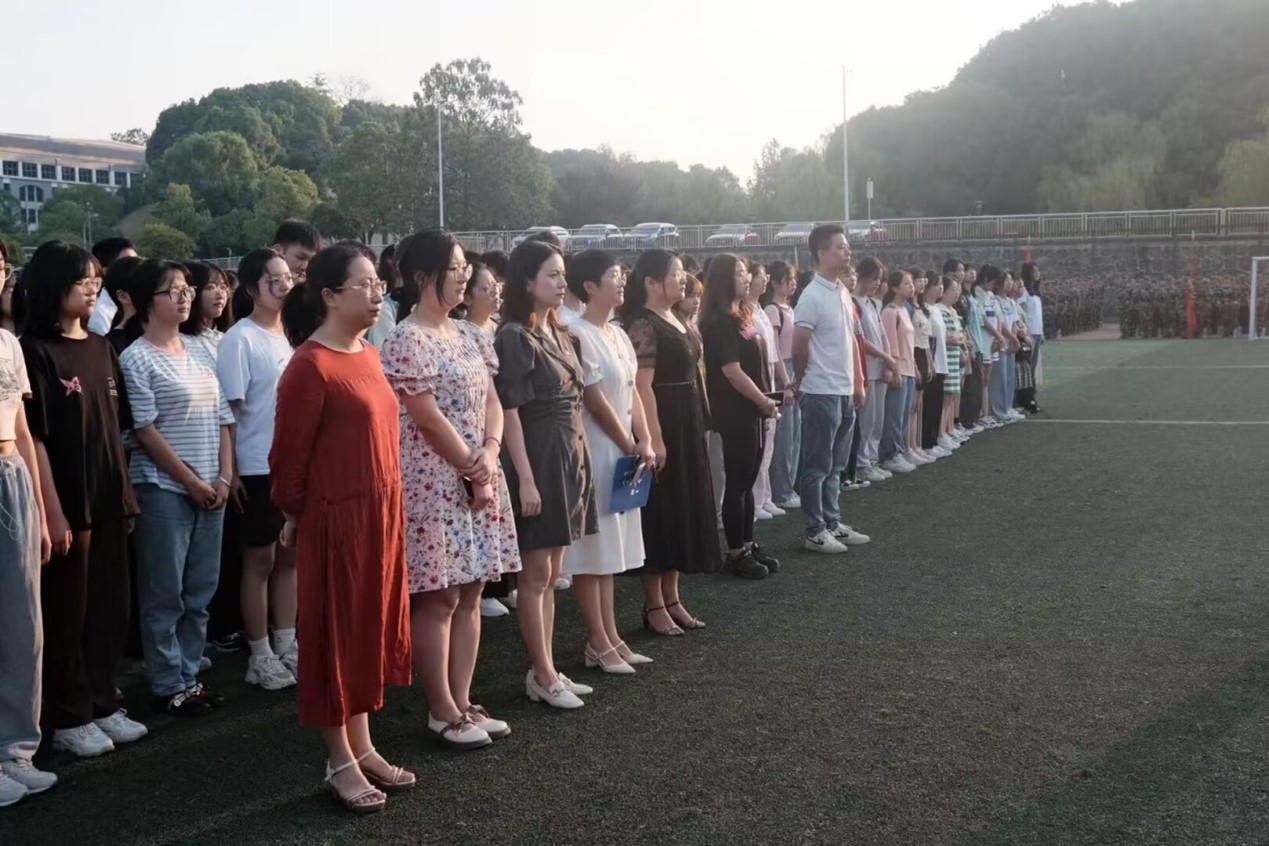 清晨七时整,国旗仪仗队队员迈着铿锵步伐,拥簇着五星红旗来到旗杆下。激昂的《义勇军进行曲》奏响之时,全体师生面向冉冉升起的国旗肃立致礼、齐唱国歌。