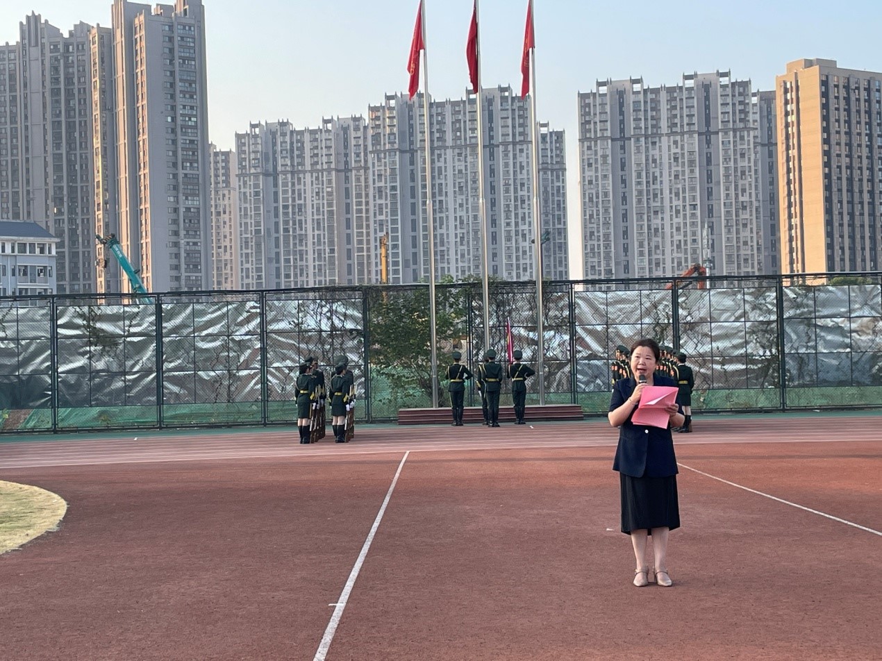 陈天涯书记以“青春献礼二十大,强国有我新征程”为主题在国旗下发表讲话,她对同学们提出三点期望:第一,爱党爱国爱人民,筑牢理想信念之基,要让爱国主义的伟大旗帜始终在心中高高飘扬。第二,矢志拼搏奋斗,不负时代重托,要成为实现中华民族伟大复兴的先锋力量。第三,要有锐意创新的勇气、敢为人先的锐气,以聪明才智贡献国家。