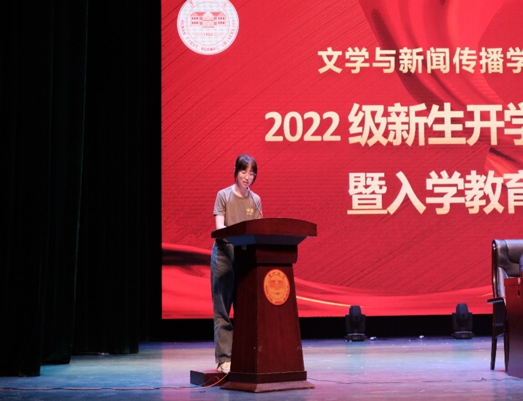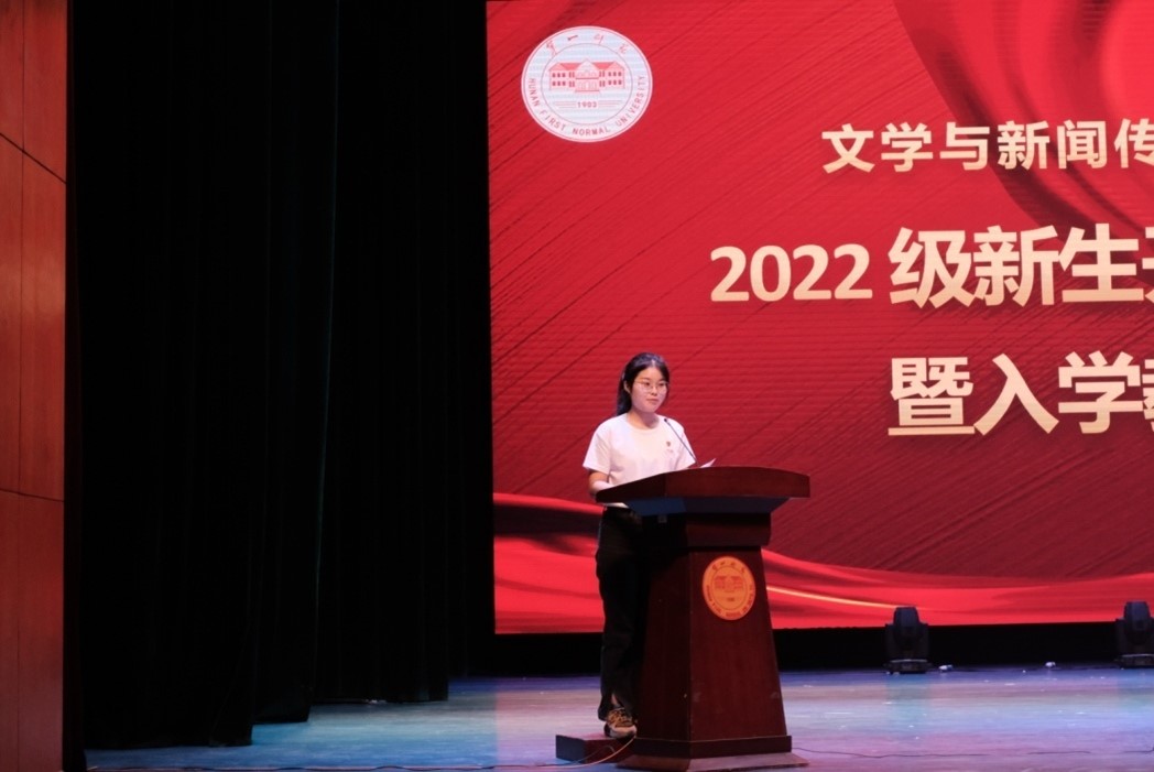对于每一位学子,瞄准人生目标而上下求索尤为重要。来自2020级汉教1班的老生代表江馨在发言中呼吁新生,我辈当如千万名以润之学长为代表的优秀校友,去追求卓越去担负使命!来自2022级中文1班的新生代表王静怡则大声喊出与一师文传共进步的最强宣言。