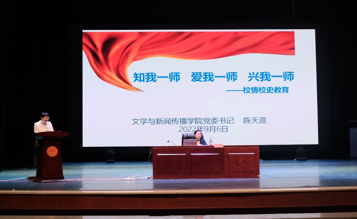 开学典礼结束后,陈天涯书记为新生开展校情校史主题教育。陈书记从学校历史发展、校园文化、学校发展规划和办学新理念四个方面向新生展开一师百年画卷,深入浅出地讲解伟人背后的一师,用谐音、联想、数字代替等方法帮助新生更快“上道”,了解一师全貌。通过展示一师骄人成绩,深植爱我一师情怀,培养共荣辱同进退意识。