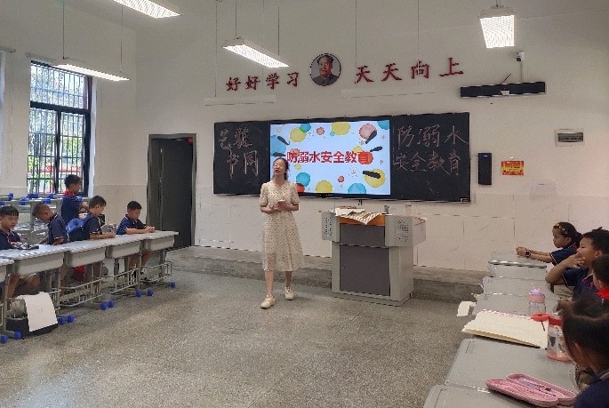 “三下乡”实践团于7月3日在韶山市芙蓉学校开展防溺水教育宣讲,分四个班进行,共有84名小学生聆听宣讲,在授课宣讲过程中,授课组教师制作了精美的PPT动画,为孩子们生动直观的展示了溺水给家庭带来的无限伤痛,告诉孩子们应该原理危险水域,同时还通过现场演示的直观方式教会了孩子们如何在遇到危险时进行自救;与此同时,团队成员还分批次在学校周围乡镇进行了“炎炎夏日,谨防溺水”专题宣传活动,通过发放问卷、讲述小故事等村民们感兴趣的方式宣传防溺水知识,共有百余位村民参与其中,宣传效果好,成效棒。