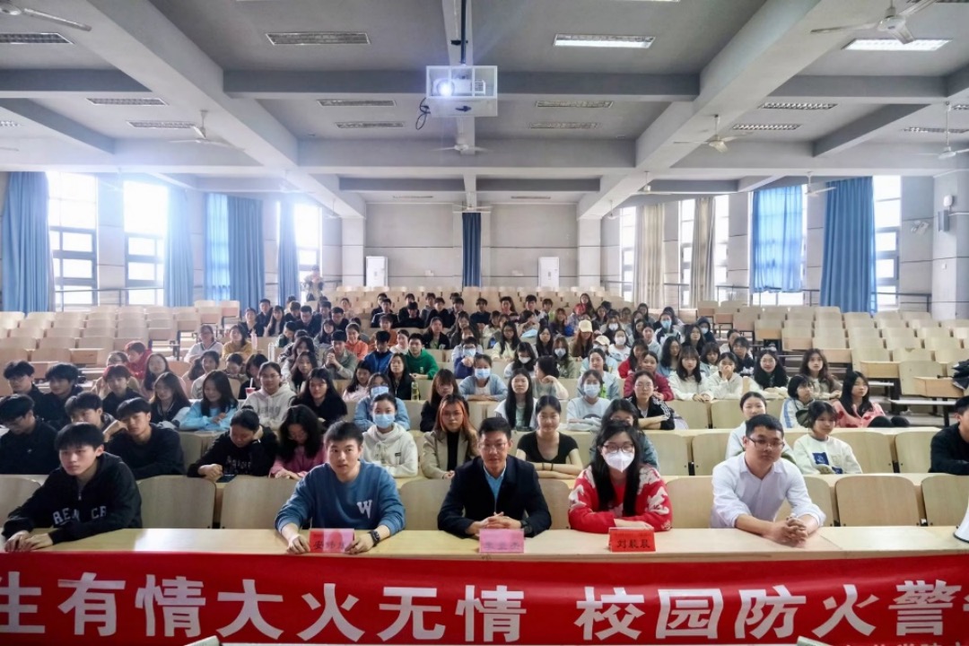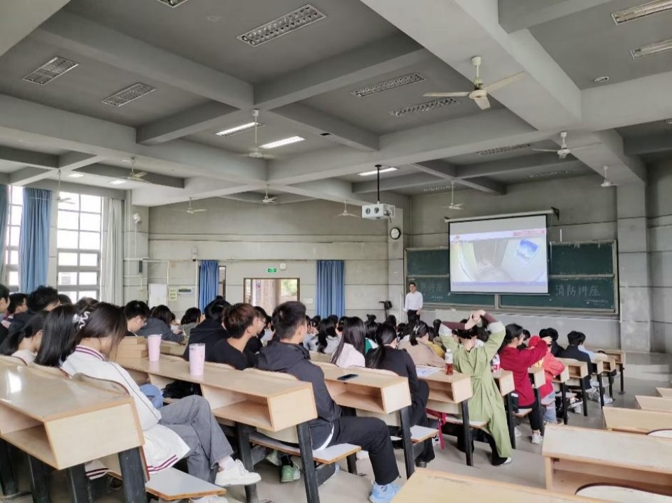 活动氛围中专题讲座与应急疏散演练两个部分,特邀康安消防安全服务中心周琪教官作为主讲,学院党委李豪杰副书记、学工办全体辅导员及150名学生代表参与本次活动。
