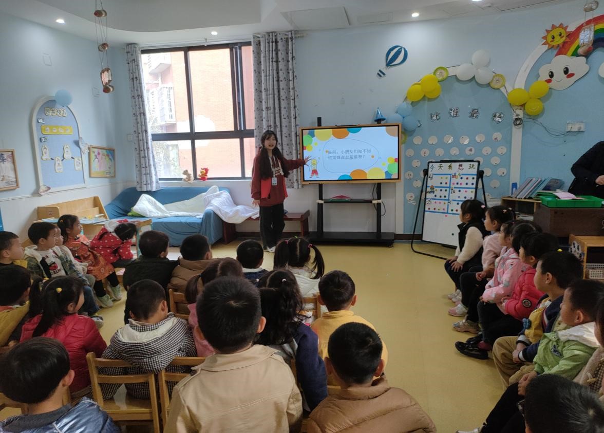 青年志愿者协会组织学生志愿者前往大花小花幼儿园开展“学雷锋”主题授课活动。