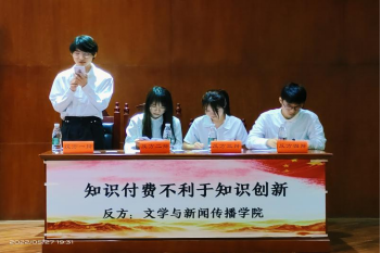 5月27日晚,脱裤吧 第五届“明辨杯”总决赛在特立南112模拟法庭内举行。脱裤吧 辩论队和商学院辩论队在辩题为“知识付费是否有利于知识创新”的总对决中,脱裤吧 作为辩论反方以2:1获得胜利。