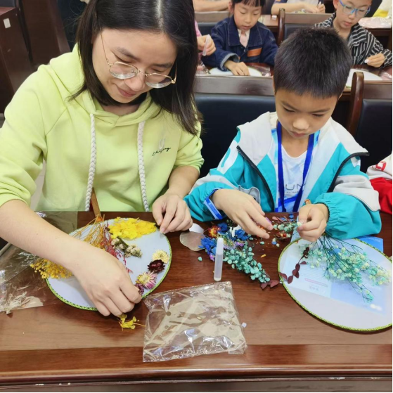 母爱主题团扇制作活动一开始,志愿者们就有些招架不住小朋友们的热情了。看!小朋友们就纷纷涌向志愿者,领取属于自己的“宝物”。在小朋友的手中,原本空白的团扇变得色彩缤纷,花意盎然,每个团扇上都镌刻着孩子们对母亲的爱。一个小朋友将亲手制作的团扇送给妈妈:“妈妈,您照顾我辛苦了!我爱你!”说完这句话后便羞涩地将头埋进妈妈怀中,她的妈妈脸上洋溢着幸福的笑容。