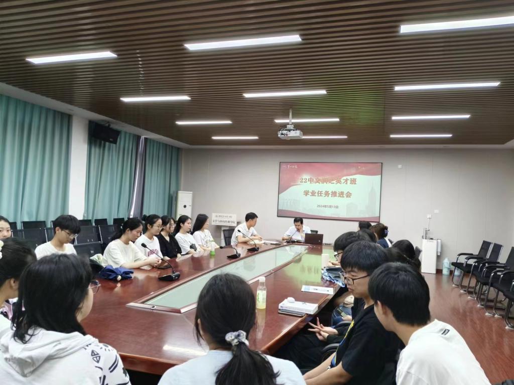 院长龙永干、党委副书记李豪杰组织22级中文润之英才班全体同学于玉衡楼201会议室召开学业任务推进会。